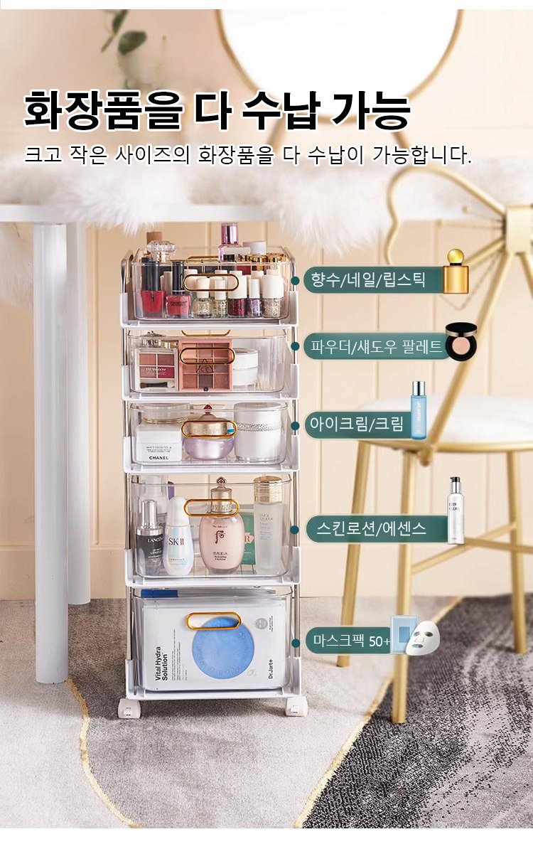 [다단 이동 바퀴] 럭셔리 가정용 수납 선반